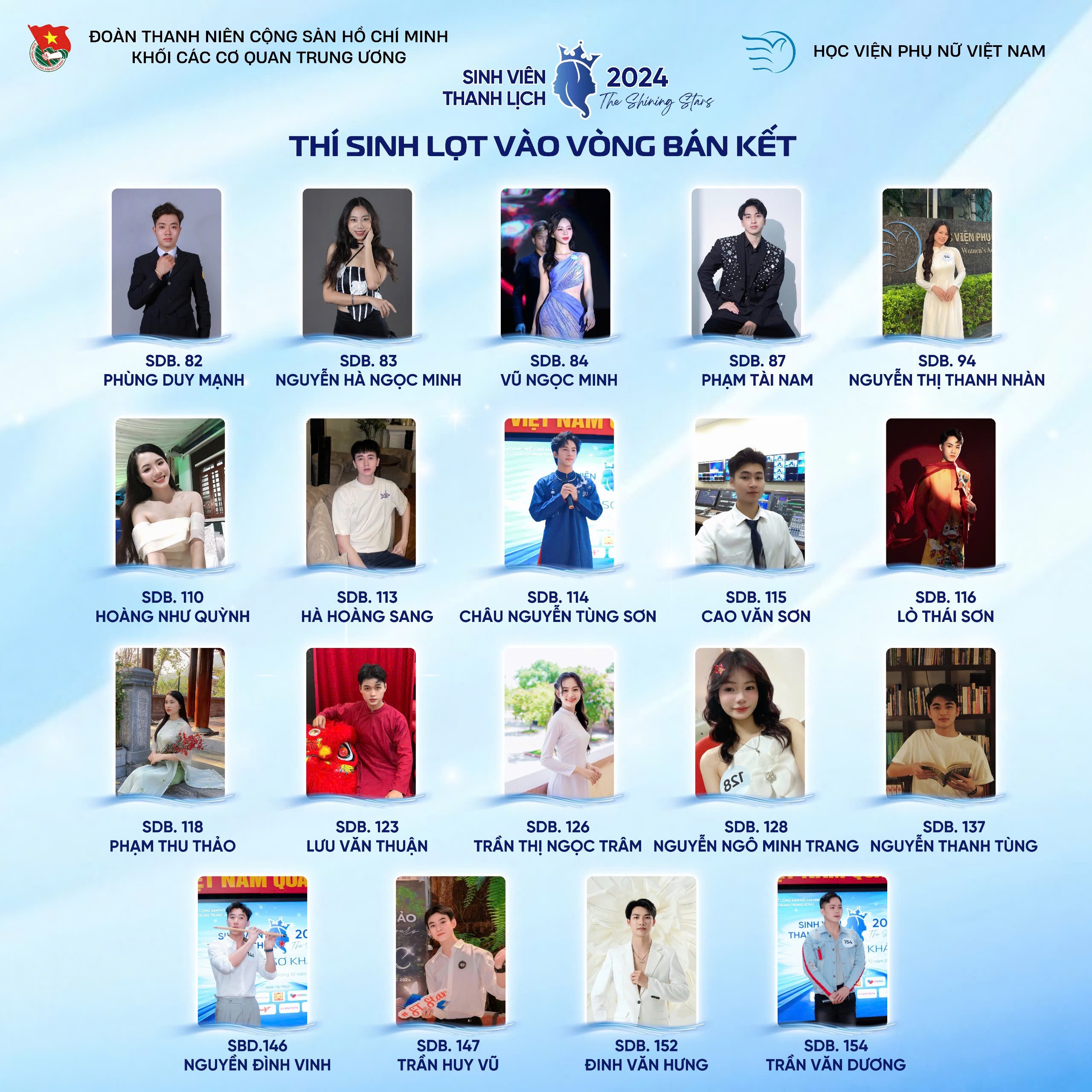 Vòng Bán kết cuộc thi năm nay hứa hẹn sẽ là một sự kiện đầy màu sắc, kịch tính và đáng nhớ, nơi những gương mặt trẻ trung, tài năng sẽ có cơ hội tỏa sáng. Qua đó, cuộc thi không chỉ tìm kiếm những sinh viên thanh lịch, tài năng mà còn truyền cảm hứng cho thế hệ sinh viên tiếp theo, khẳng định giá trị của sự tự tin, năng động và lòng nhân ái trong xã hội hiện đại.