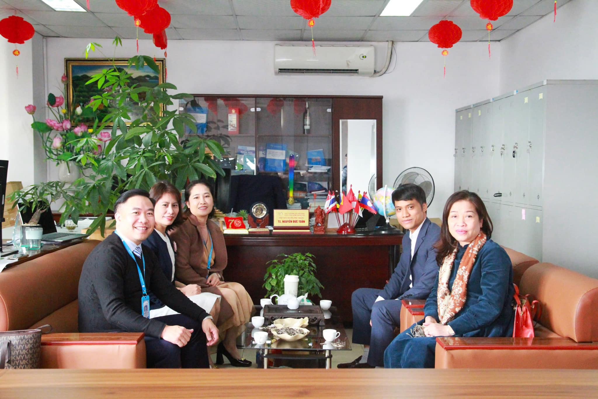 PGS.TS Lê Thanh Huệ (ngoài cùng bên phải) gặp gỡ lãnh đạo và giảng viên Viện CNTT, Học viện Phụ nữ Việt Nam