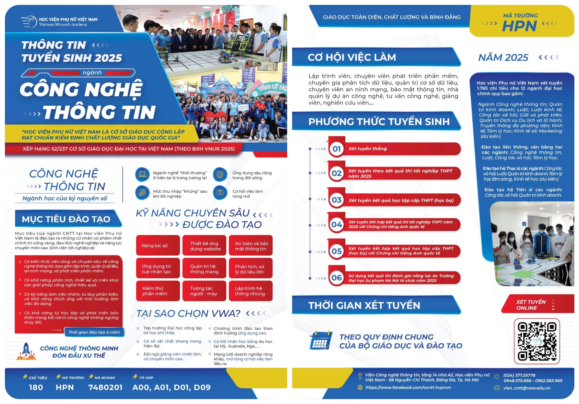 Với sự bùng nổ của trí tuệ nhân tạo, dữ liệu lớn và công nghệ blockchain, các doanh nghiệp trong và ngoài nước đều tìm kiếm những nhân tài có kiến thức chuyên sâu và kỹ năng thực hành vững chắc. Viện Công nghệ Thông Tin – Học viện Phụ nữ Việt Nam cam kết tiếp tục cải tiến phương pháp giảng dạy, mở rộng các chương trình hợp tác với doanh nghiệp và tổ chức quốc tế, tạo ra môi trường học tập năng động giúp sinh viên phát huy tối đa năng lực.