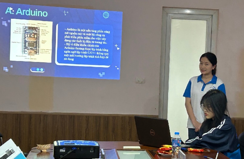 Nhóm sinh viên năm 1 thuyết trình về đề tài “Thiết kế, xây dựng mô hình cảnh báo cháy sớm và rò rỉ khí gas qua tin nhắn SMS và tự động gọi điện thoại”