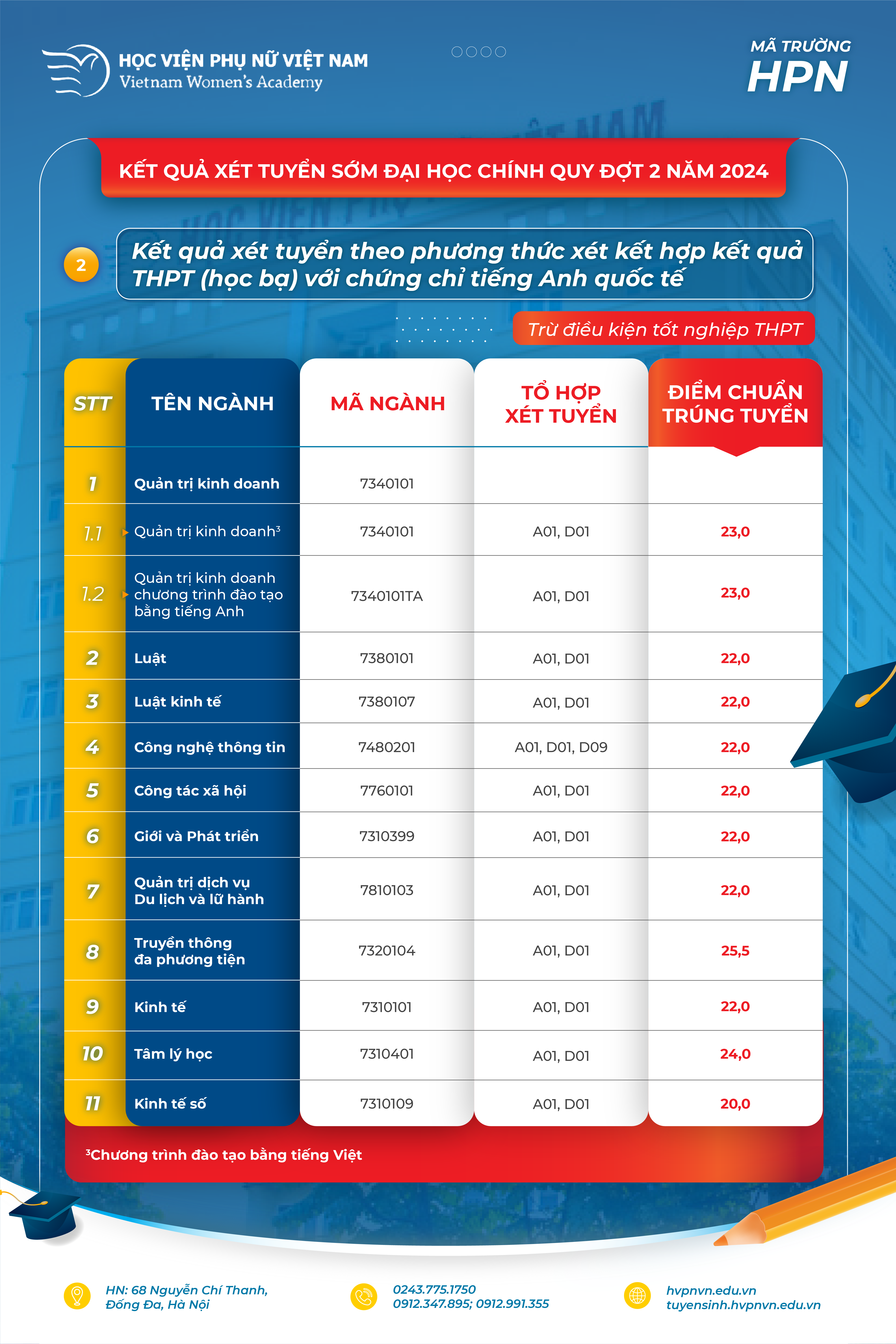 Website: https://tuyensinh.hvpnvn.edu.vn/; Email: tuyensinh@vwa.edu.vn;