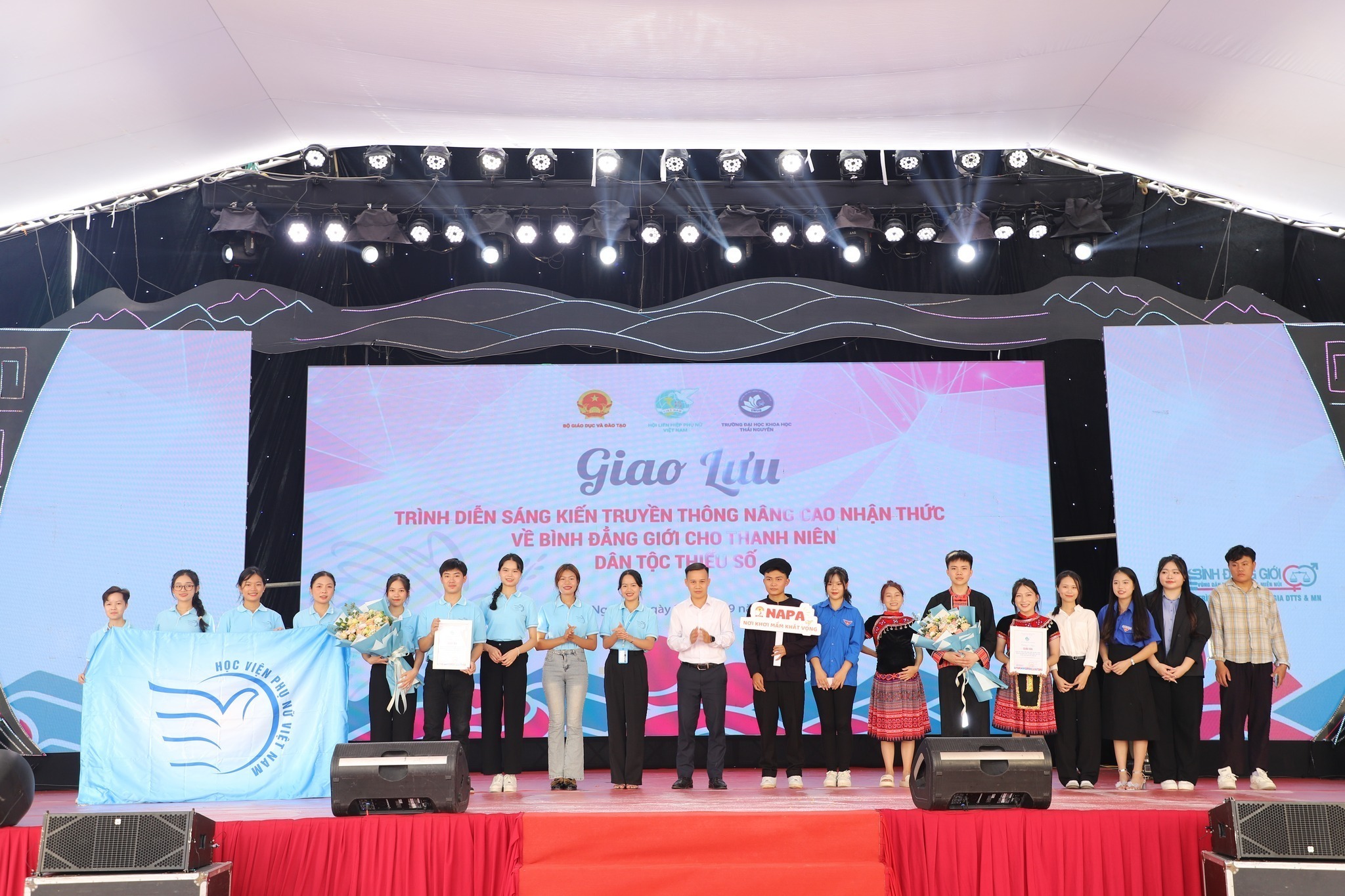 Chương trình giao lưu Trình diễn sáng kiến truyền thông nâng cao nhận thức về bình đẳng giới cho thanh niên dân tộc thiểu số DTTS có sự tham gia của sinh viên 7 trường ĐH, Học viện: Học viện Phụ nữ Việt Nam; Trường ĐH Khoa học – Đại học Thái Nguyên, Trường ĐH Tây Bắc, Trường ĐH Tân Trào, TrườngĐH Sư phạm – Đại học Thái Nguyên, Học viện Hành chính Quốc gia, Học viện Dân tộc với chủ đề “Thanh niên dân tộc thiểu số tiên phong thay đổi định kiến giới vì khát vọng phát triển“.