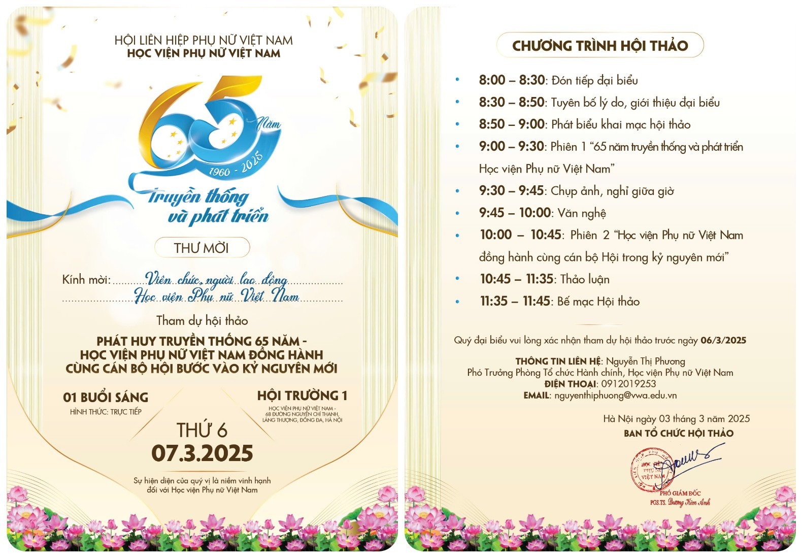 - Phiên 1: Nhìn lại truyền thống 65 năm của Học viện Phụ nữ Việt Nam