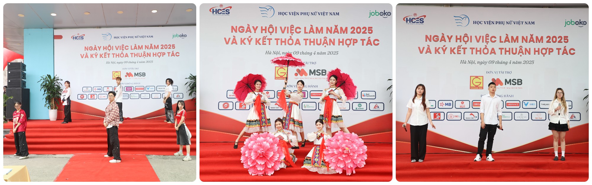 VWA JOB FAIR 2025 khởi động với chuỗi tiết mục văn nghệ chào mừng đặc sắc từ các bạn đoàn viên, sinh viên Học viện. Không khí trẻ trung, hào hứng đã tạo nên màn mở đầu ấn tượng, mang đến sự gần gũi, phấn khởi và gắn kết giữa sinh viên với các khách mời, nhà tuyển dụng.