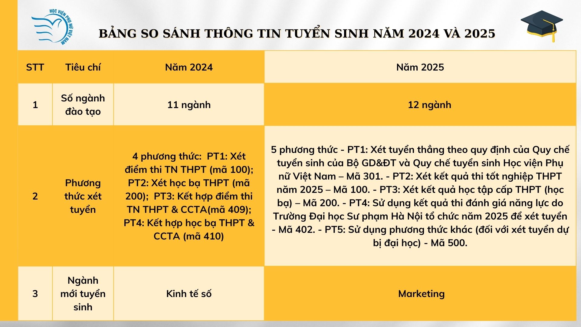 Năm 2025 – hãy để Học viện Phụ nữ Việt Nam là điểm khởi đầu cho hành trình trưởng thành của bạn. Với hệ thống xét tuyển linh hoạt, tổ hợp phong phú, ngành học đa dạng và môi trường học tập thân thiện, Học viện không chỉ giúp bạn “đỗ đại học” mà còn giúp bạn trưởng thành toàn diện về tri thức, kỹ năng và giá trị sống.