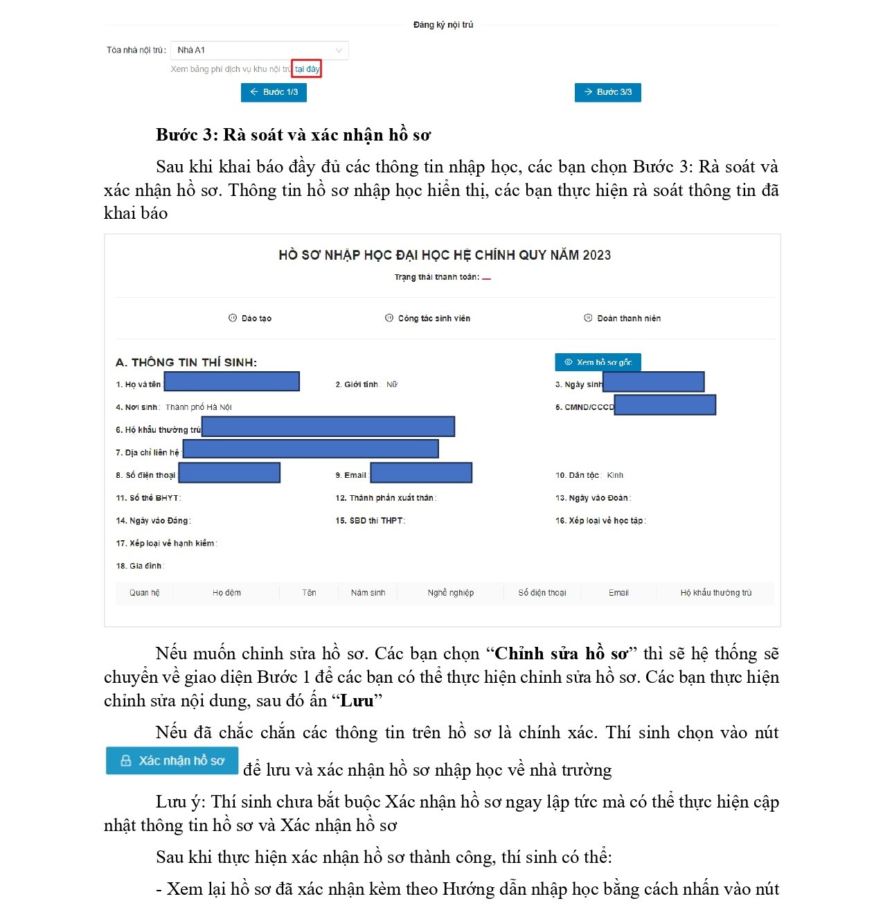CÁCH THỨC NHẬP HỌC: Thí sinh bắt buộc thực hiện 03 Bước sau: