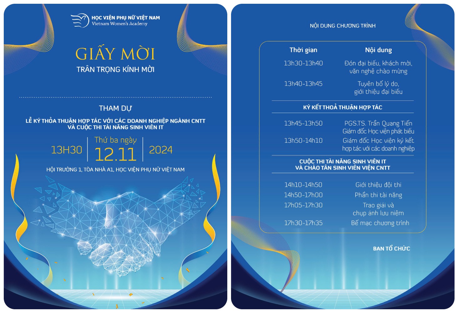 Sự kiện Lễ ký kết hợp tác và cuộc thi Tài năng sinh viên không chỉ là hoạt động chào mừng các tân sinh viên khóa 12 của Viện Công nghệ Thông tin mà còn là sân chơi bổ ích giúp sinh viên có cơ hội nâng cao kỹ năng mềm, khám phá và phát triển tài năng. Cuộc thi “Tài năng sinh viên IT lần thứ nhất” là dịp để các bạn trẻ thể hiện sự sáng tạo, kỹ năng làm việc nhóm và tinh thần thanh niên năng động trong thời kỳ chuyển đổi số.