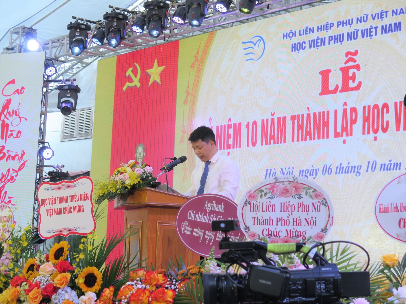 Hôm nay, Học viện Phụ nữ Việt Nam long trọng tổ chức Lễ kỷ niệm 10 năm thành lập Học viện Phụ nữ Việt Nam và khai giảng năm học mới (2022-2023). Lời đầu tiên cho phép tôi thay mặt BGĐ Học viện, cùng toàn thể giảng viên, viên chức, người lao động và sinh viên, nhiệt liệt chào mừng các đồng chí lãnh đạo Hội LHPN Việt Nam, văn phòng Quốc hội và toàn thể quý vị đại biểu đã tham dự Lễ kỷ niệm, Lễ khai giảng và chia sẻ niềm vui cùng Học viện Phụ nữ Việt Nam. Xin trân trọng gửi tới các đồng chí và quý vị đại biểu những lời chúc tốt đẹp nhất; chúc cho buổi lễ của chúng ta sẽ thành công tốt đẹp.