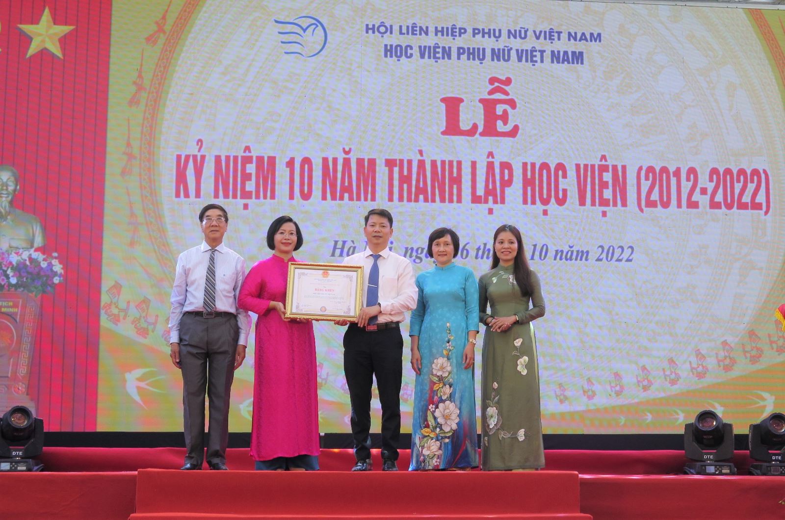 10 năm là một chặng đường không dài nhưng có thể khẳng định, với những đóng góp quan trọng, ngày càng nổi bật trên các lĩnh vực đào tạo đại học, bồi dưỡng cán bộ, nghiên cứu khoa học, kết nối và phục vụ cộng đồng; Học viện hoàn toàn xứng đáng được Đảng, Nhà nước, TW Hội LHPN Việt Nam ghi nhận, đánh giá cao; là địa chỉ tin cậy để đông đảo người dân và xã hội biết đến, tin tưởng lựa chọn để phát triển con đường học hành và nâng cao năng lực nghề nghiệp, là đối tác lâu dài để các doanh nghiệp, tổ chức cùng đồng hành, hợp tác. Với những nỗ lực về mọi mặt, trong 10 năm qua Học viện đã vinh dự đón nhận Huân chương Lao động Hạng Ba năm 2021, 04 Cờ thi đua của Chính phủ và 04 Cờ thi đua của Hội Liên hiệp Phụ nữ Việt Nam, Bằng khen của Thủ tướng Chính phủ năm 2015; 06 Bằng khen của Hội Liên hiệp Phụ nữ Việt Nam, 02 Bằng khen của Học viện chính trị quốc gia Hồ Chí Minh; và hôm nay vinh dự được nhận Bằng khen của Hiệp hội các trường đại học, cao đẳng Việt Nam.