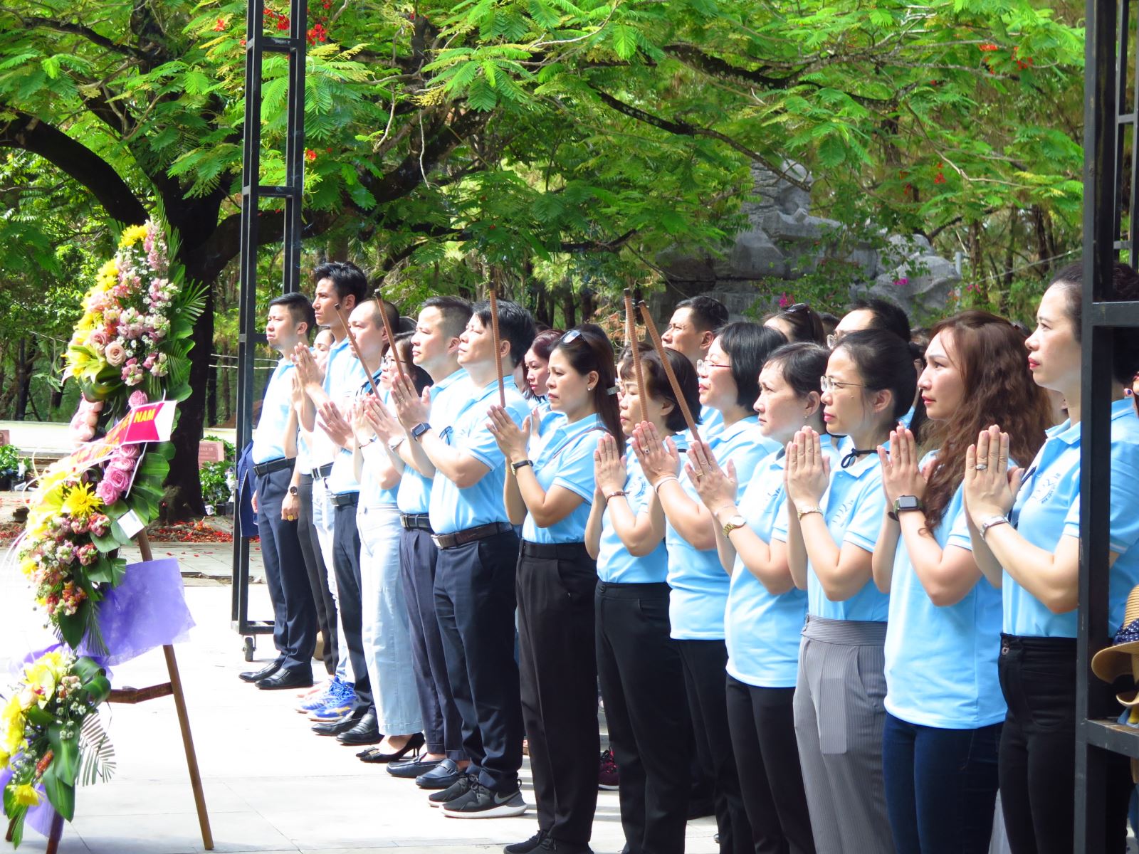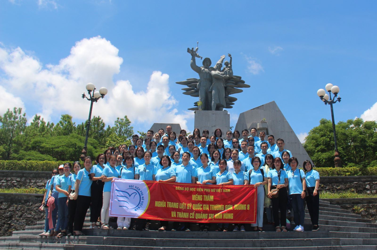 Nằm trên vùng đồi tĩnh lặng trong nghĩa trang liệt sĩ Đường 9 là nhiều ngôi mộ tập thể và hàng ngàn mộ chiến sĩ chưa xác định danh tính. Những giọt mồ hôi và cả nước mắt quyện vào khói hương của cả đoàn. Mỗi nén hương tri ân là một lời cảm tạ, biết ơn của thế hệ chúng tôi, những người được sinh ra trong hòa bình, không phải chịu cảnh khổ đau, chia cắt bởi bom rơi, đạn nổ. Càng biết ơn, càng tự hào, mỗi thành viên của đoàn càng tự nhắc mình cần nỗ lực nhiều hơn khi được ngắm hoa độc lập, hái quả tự do.