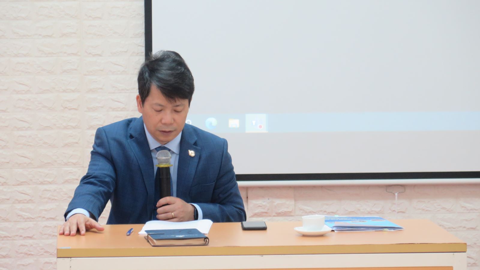 Chủ trì cuộc họp là PGS.TS. Trần Quang Tiến – Chủ tịch Hội đồng tuyển sinh, Giám đốc Học viện. Các thành viên thuộc hội đồng tuyển sinh là lãnh đạo đại diện các khoa chuyên ngành cũng có mặt tham dự cuộc họp.