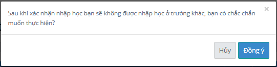 Bước 5: Nhấn Đồng ý để hoàn thành việc xác nhận nhập học