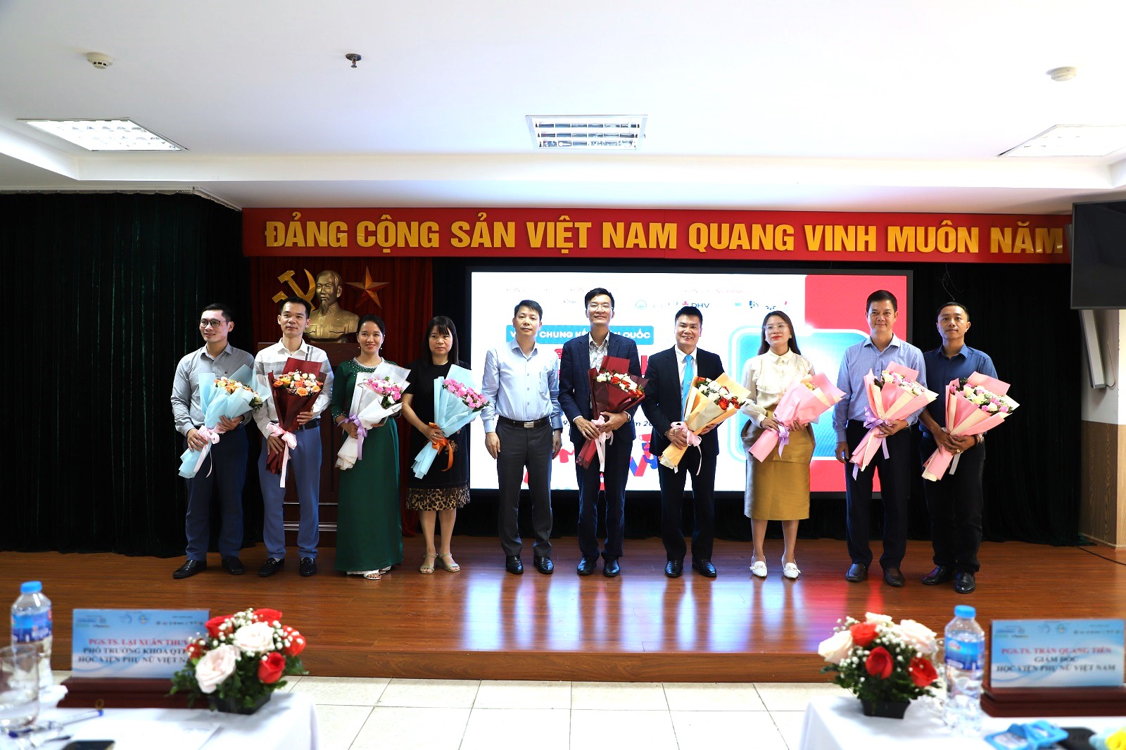 PGS.TS. Trần Quang Tiến – Giám đốc Học viện, Trưởng Ban tổ chức Cuộc thi Genesis 2023 tặng hoa tri ân các nhà tài trợ và Ban Giám khảo cuộc thi