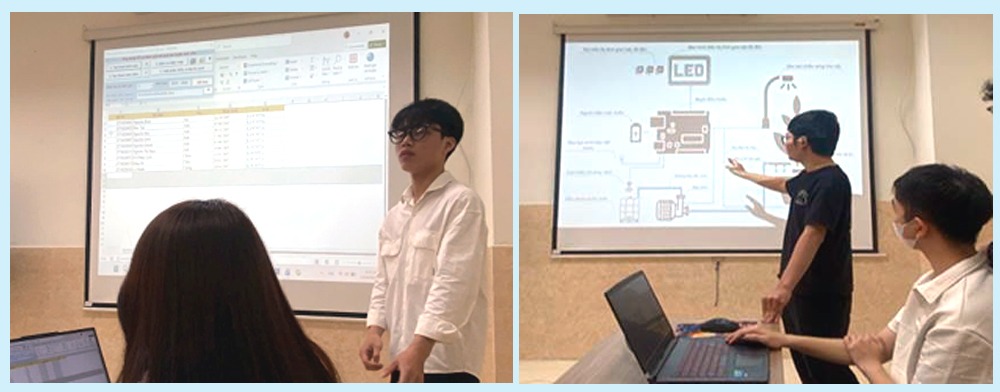 Trong khi đó, sinh viên năm ba – lực lượng nòng cốt của nhiều nhóm – thể hiện sự trưởng thành rõ rệt về chuyên môn. Sinh viên Vương Công Thắng cho biết: “Nghiên cứu khoa học giúp chúng em hệ thống hóa kiến thức và tiếp cận các công nghệ mới. Đặc biệt, việc tham gia xây dựng sản phẩm hoàn chỉnh giúp chúng em hiểu rõ hơn yêu cầu thực tế của ngành.”