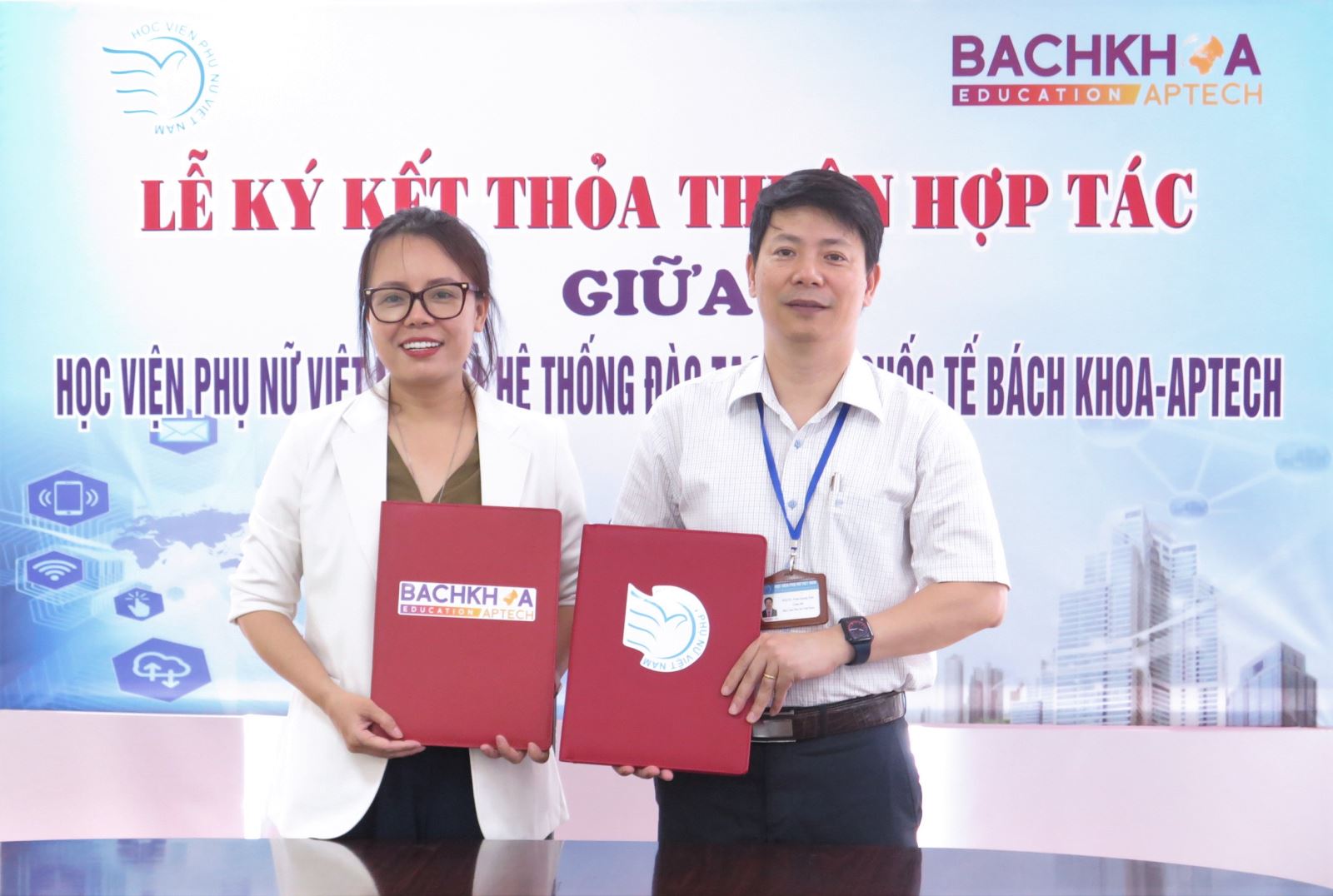 Giám đốc Học viện Phụ nữ Việt Nam và Tổng Giám đốc Bách Khoa Aptech ký kết hợp tác đào tạo ngành CNTT