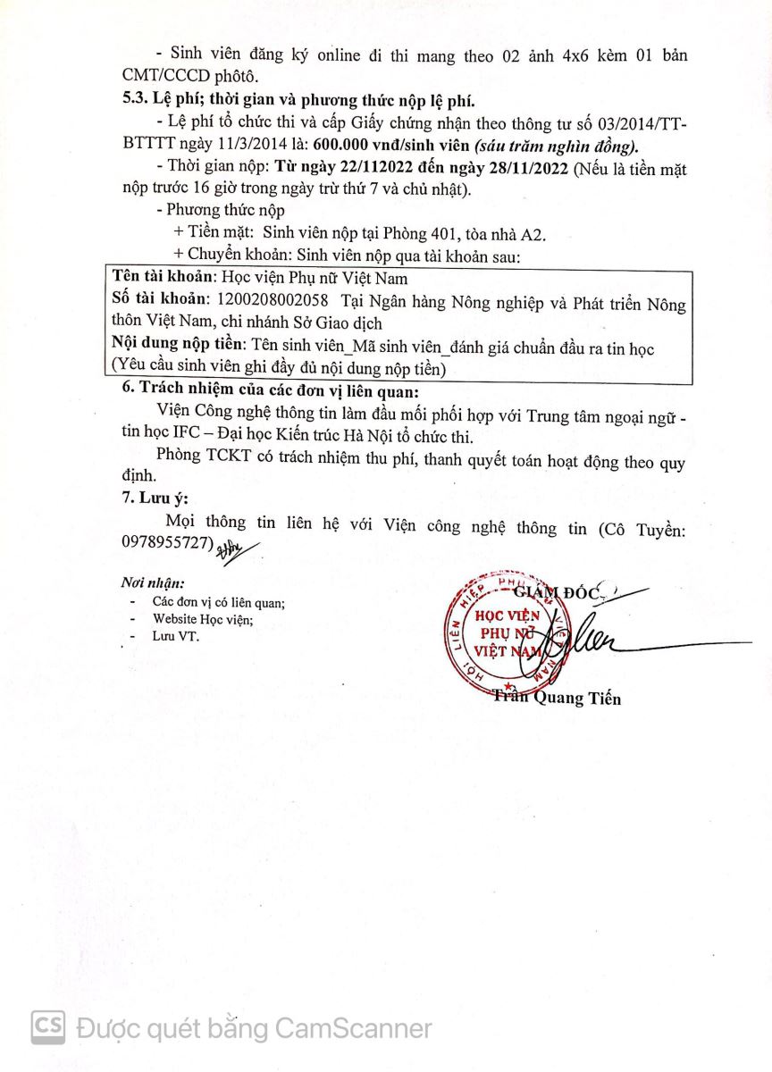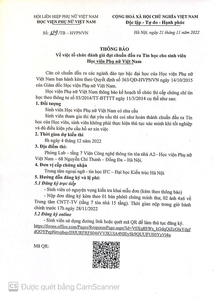 Thông báo đánh giá đạt chuẩn đầu ra Tin học của sinh viên