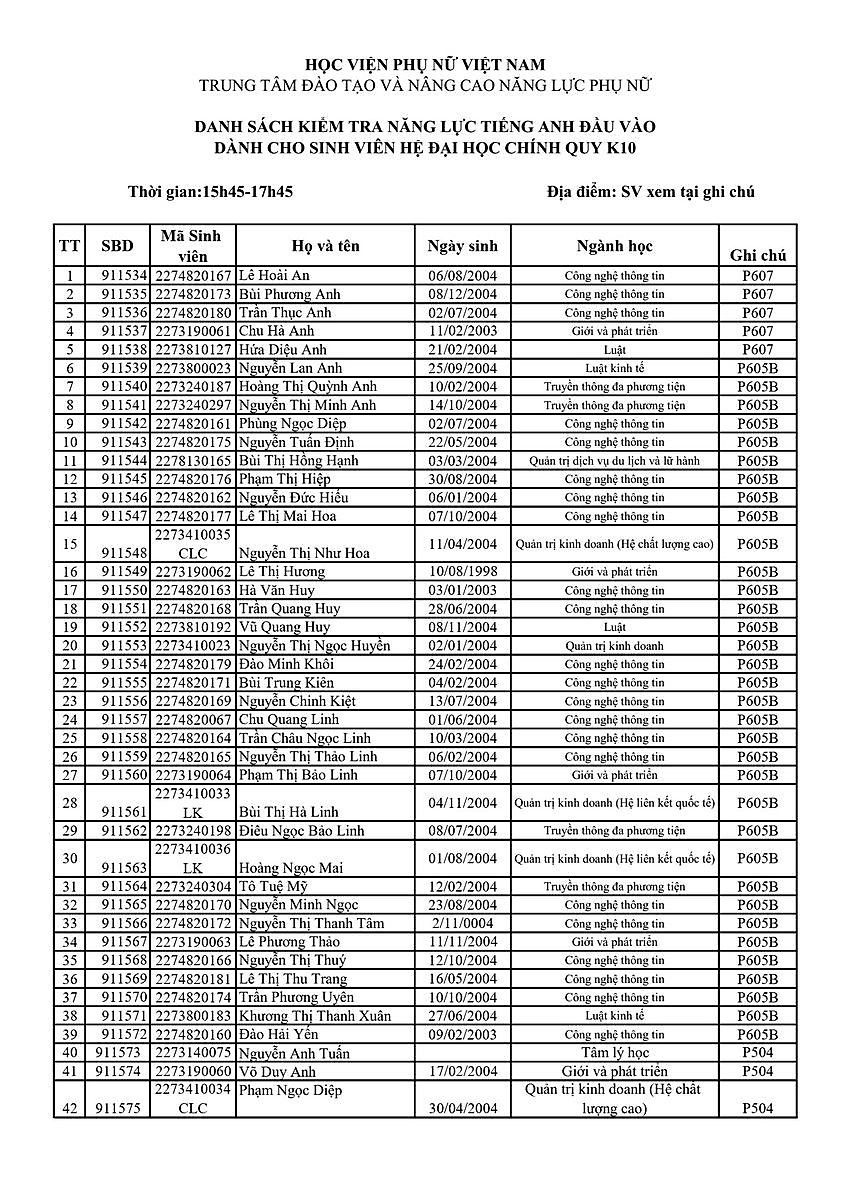 DANH SÁCH THÍ SINH BỔ SUNG