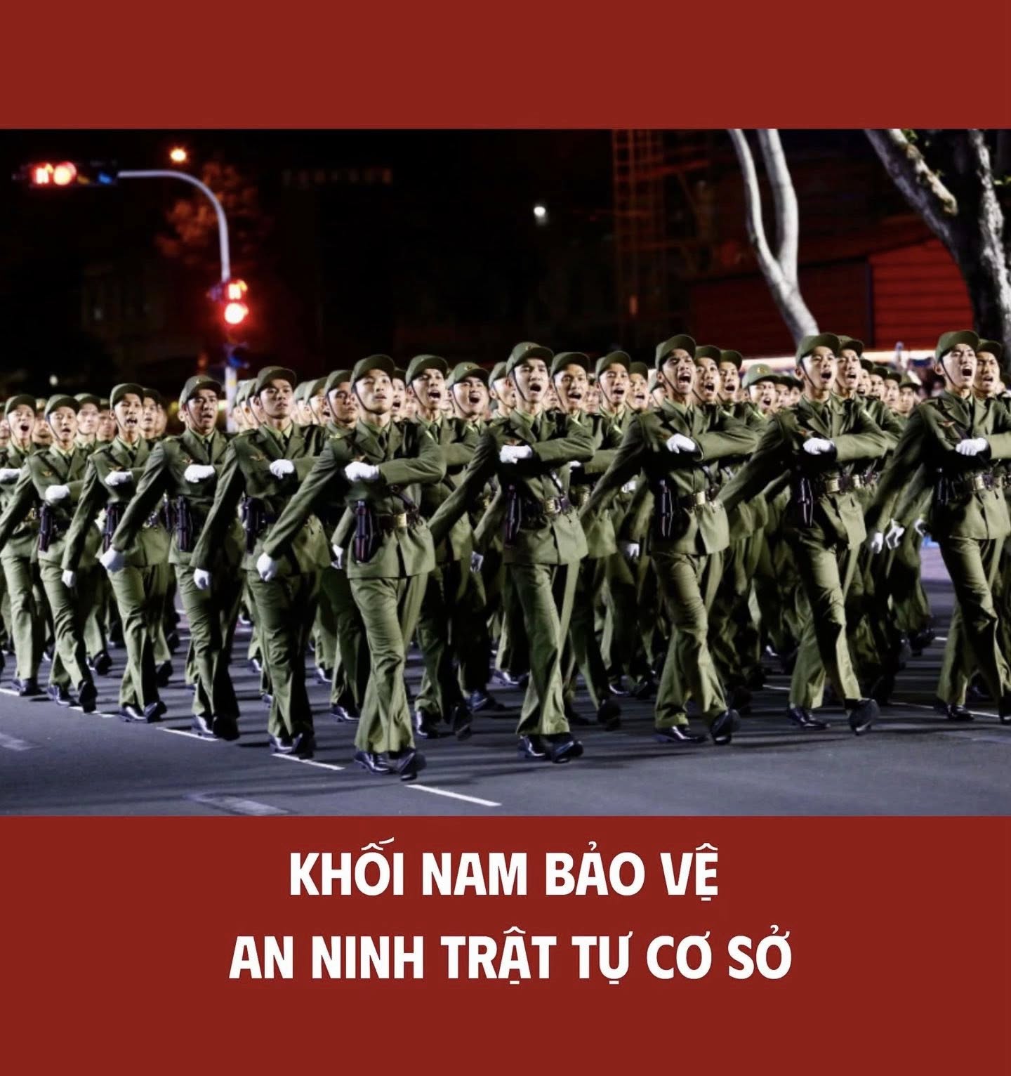 - 12 khối diễu hành quần chúng đại diện các tầng lớp nhân dân,